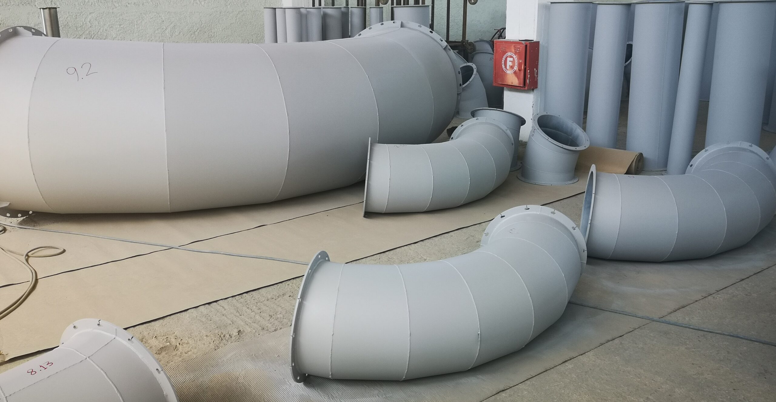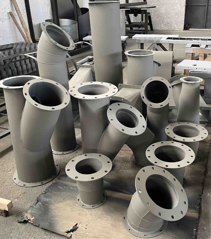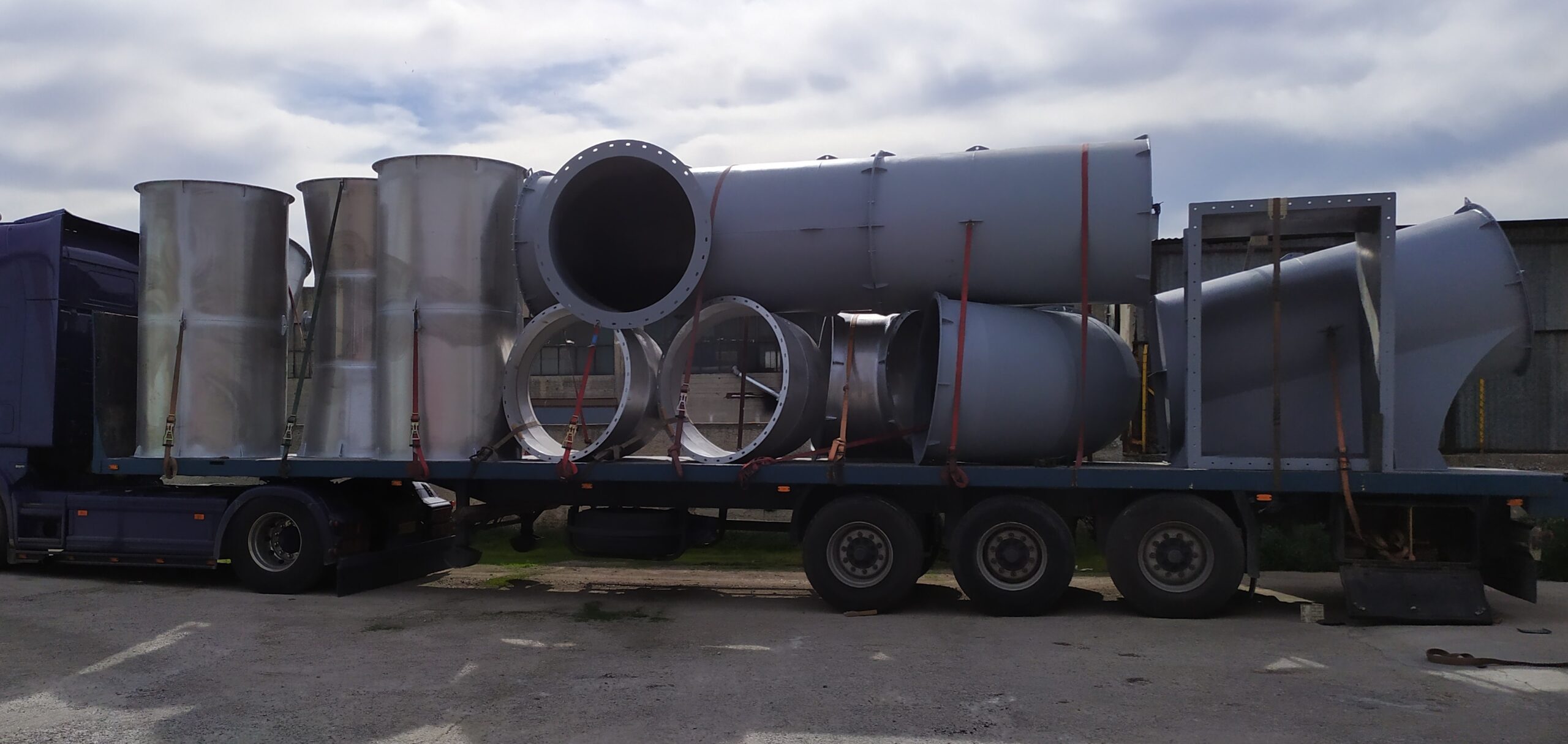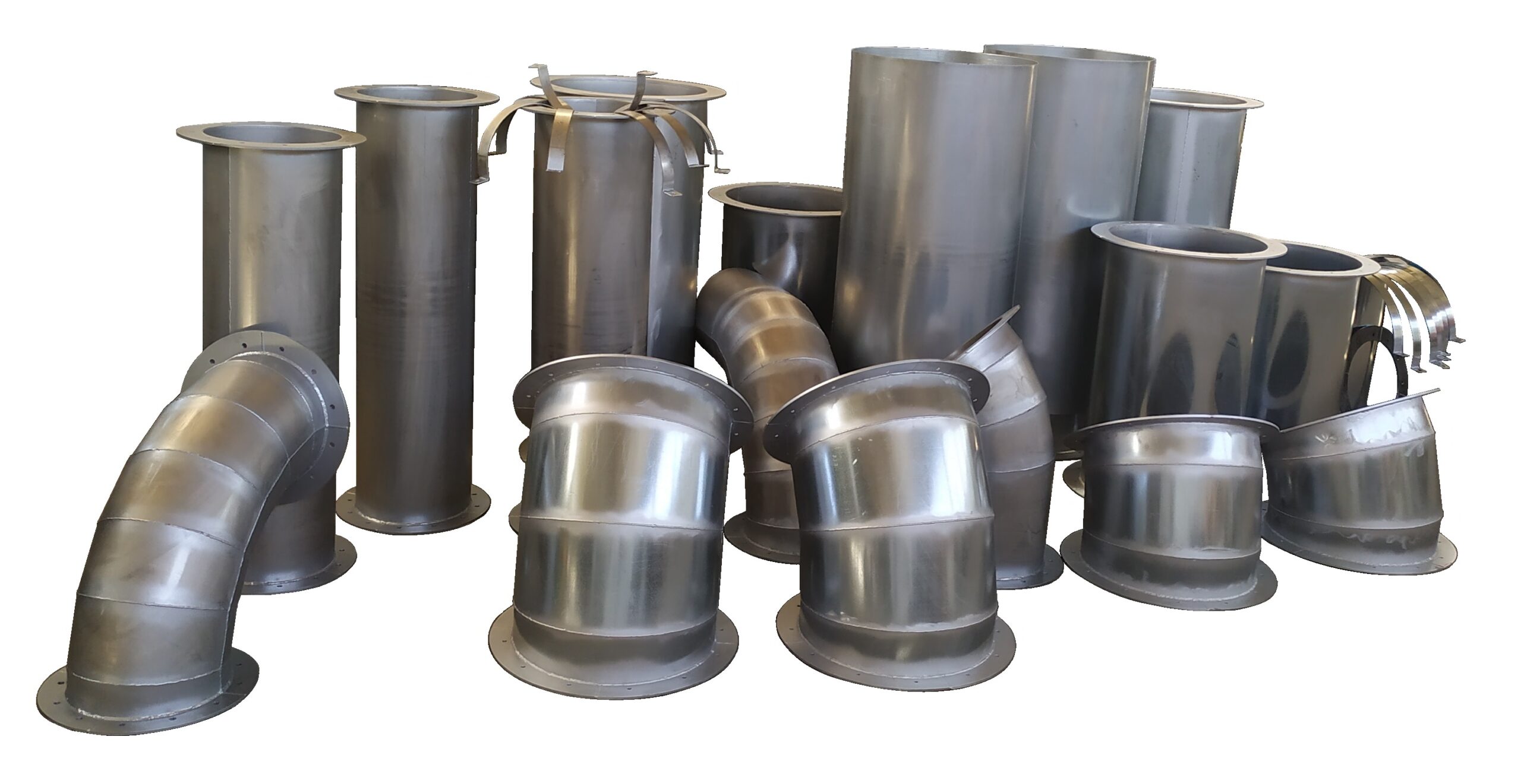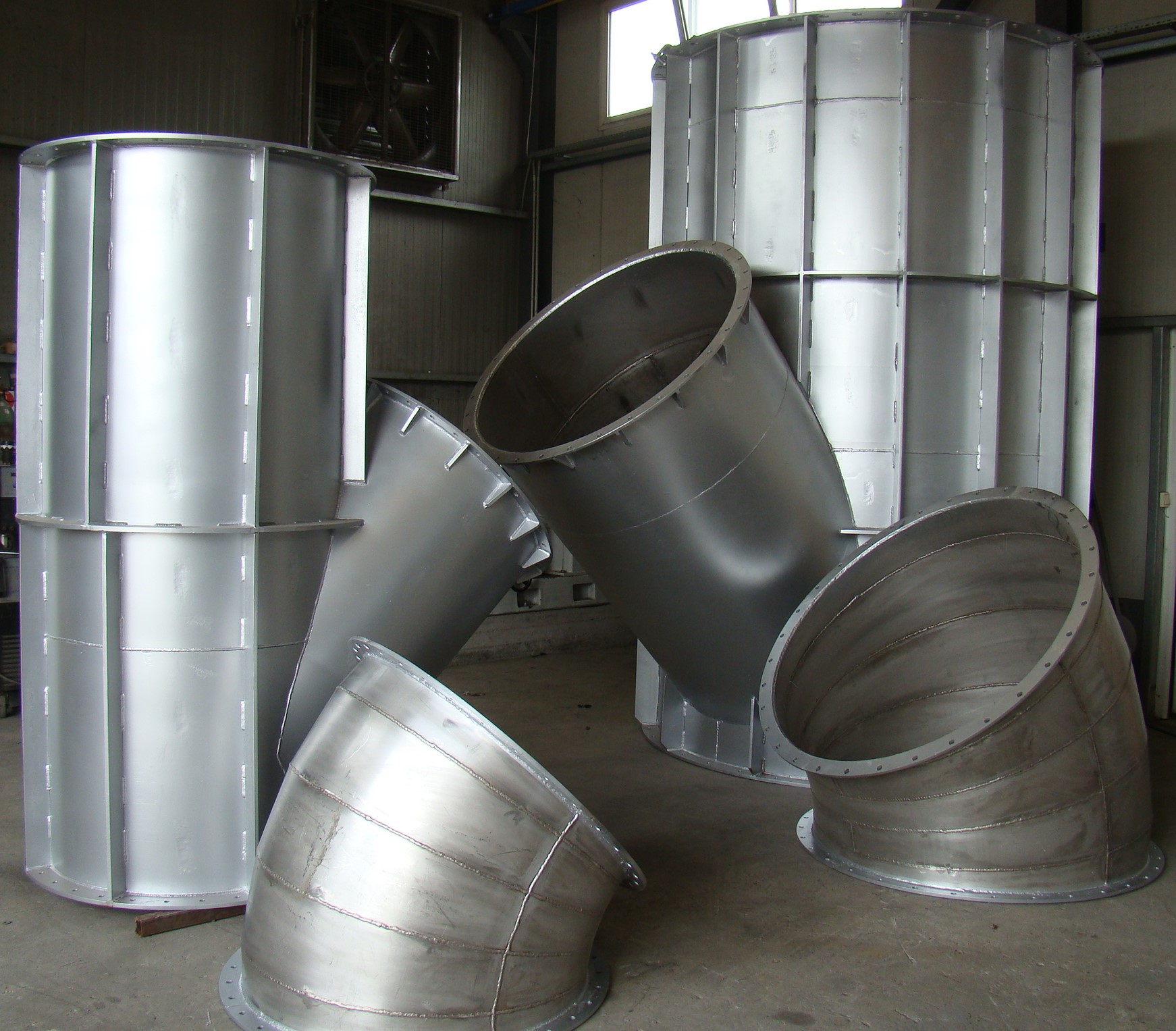 Κατασκευάζει μεταλλικούς αεραγωγούς βαρέως τύπου συγκολλητούς πάχους από 1,5 έως 8mm, στρογγυλής και ορθογώνιας διατομής, από κοινό (S235JR), γαλβανιζέ και ανοξείδωτο χάλυβα.